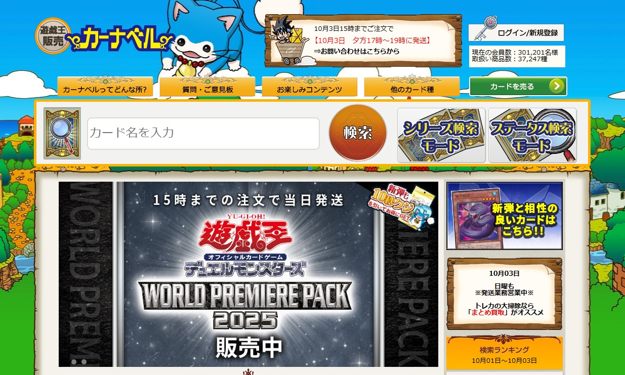 カーナベルは検索機能が充実しており、希少カードや特定シリーズのカードを探している人にぴったりです。豊富な在庫と明確な状態表示により、欲しい1枚を安心して購入できます。