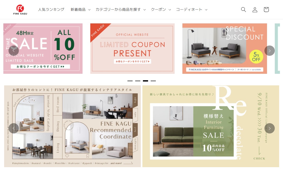 FINE KAGUは、豊富なデザインと機能性を兼ね備えた照明を中心に、暮らしを彩るインテリアを幅広く展開する通販サイトです。おしゃれな空間づくりを目指す人、使いやすさを重視する人、インテリアをトータルでまとめたい人に最適なサービスといえます。理想の住まいを実現したい人におすすめのサイトです。